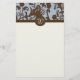 Nätt brevpapper med en titelrad som göras i en blått- och bruntdamast, med ett rundamonogramområde och ett kräm- textområde. Underbar tittar brevpapper för någon dag. Personifiera med din egna initialer för ett riktigt älskvärt personligt stationärt.