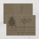 Brun präglat träd på sepia wood Rustic vinterbröllop med OSA kort med val av måltid. Det visar en barrträd träd i präglat relief stil på säd av sepia och "OSA" i ett dekorativt typsnitt.