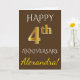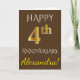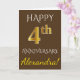 Den här enkla hälsningskortet för bröllop-personligen innehåller meddelandet "LYCKLIG 4:e årsdagen", där det "4:e" utseendet liknar guld. På framsidan finns också en personlig namn och en brun färgad. Inuti finns ett budskap om hälsning på personligt bröllp-årsdagen. Det skulle kunna ges till en make eller en hustru i firande på parets fjärde bröllop-årsdag. [~Z0000090]