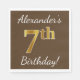 Den här enkla pappra napkin-designen innehåller ett meddelande som "Alexander’s 7:e Birthday!", där "7:e" har ett utseendeliknande utseende som liknar guld, på brunt färgad. Namn kan vara personlig. Den skulle kunna användas i en födelsedagsfest till någon som firar sin sjunde födelsedag. [~Z0000082]
