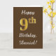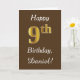Brun, Faux Guld 9:e födelsedagen + Anpassat namn Kort