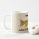 Råna att presentera en vattenfärg av en brun forellvattenfärg vid Thom som är glace på en kaffemugg