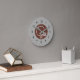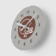 Idrottskläder med väggklocka tryckt i grått och brunt färger med en hjälmaccent i mitten och rummet för initialer. Ditt val av kvadrat eller runda. Ändra bakgrundsbilden för färg om du vill.