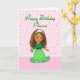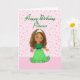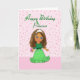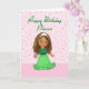 Detta födelsedagkort är färdigt någon liten flickaprincess. Det huvudsakliga grafiskt är en princess med brunt hår, och blått synar, iklätt en lång grönt rufsad klänning med ett grönt bandbälte. Grattis på födelsedagen Princess. Den inre texten och ballongen som är grafiska på insidan, kan redigeras.