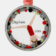 Brun hårgymnast i röd, svart & grön minnessak julgransprydnad metall