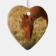 Brun häst i gult träd fält julgransprydnad keramik