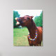 Brun häst med halsband, barderande tänder, canvastryck