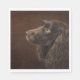 Utformningen har en fotografisk porträtt av en hund med brunt hår mot en mörk brun bakgrund.