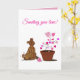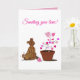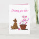 Skicka lite extra kärlek med det här anpassningsbara vykortet med min egen illustration av en söt brun hund som tittar kärleksfullt på en blommande hjärtformad växt. I kombination med meddelandet ”Skickar kärlek till dig!” fångar denna design värme, tröst och den enkla skönheten i kärlek som växer med tiden.