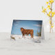 Brun tjur i fält täckt med snö mot ett vackert blå himmel hälsning-kort