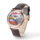 Fågelklockan. Det är en vacker elegant biet med svarta siffror. Med en blå och vit och röd amerikansk flagga. Med en örn som flyger framför den, uppe i himlar.