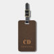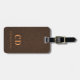 Brun faux-läder skrivs ut som bakgrund. Anpassa och lägg till ditt monogram brev och fullt namn på framsidan. Din kontaktinformation på baksidan. Golden text.