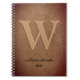 Brun läder Rustic monogram svart skript namn Anteckningsbok