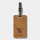 Brun läder Struktur monogrammad Namn-resggage-tagg Bagagebricka