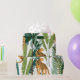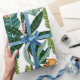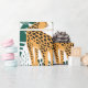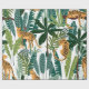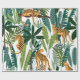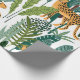 Brun spots leopard i tropiska lush-löv och växthamling.