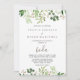 Kompilera er rustiska spanska bröllop-händelse med denna bruna minimalistiska grönt lövs Bda-bröllopsinbjudan. Konstruktionen har vattenfärgsfärgade grönt eucalyptus löv och bruna blommor.
