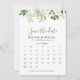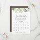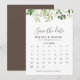 Denna bruna minimalistiska grönt löv, förutom datumkalendern, är perfekt för ett orustigt bröllop. Konstruktionen har vattenfärgsfärgade grönt eucalyptus löv och bruna blommor.