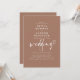 Det minimalistiska romantik möter en skarp charm i denna moderna bröllopsinbjudan - en mjuk mocha-design som känner sig obeveklig chic och personlig. Med en krämt brun bakgrund tar typografin mittsteg med en blandning av skarp, modern text och ett lekfullt handskript, komplett med en delikat hjärtedetalj för den hjärtliga stollig. Enkelt, rent linjer och centrerad layout ger en känsla av balans i lugnen, medan det handskrivna bröllop-skriptet tillför en brinnande, glatt energi. Det är perfekt för par som kärlek underskattade elegans med en ny contemporary-tvist. Den här inbjudan passar perfekt för moderna neutralter, terracotta-paletter eller varma minimalistteman och passar perfekt ihop med organiskt struktur, torkade blommigtar eller ljusa receptioner. Anpassa färg och bakgrund så att det verkligen blir ditt - oavsett om du föredrar mjuka toner, lera, eller sandtoner.