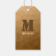 Brun monogram, geometriskt nät mönster Monogram Presentetikett