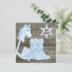 Bedårande rustika ladugårds trä med babyblå cowboy boots, cowboy hatt, sheriffmärke och käpp häst baby pojke cowboy shower inbjudan. Lägg till dina detaljer på framsidan och/eller baksidan genom att börja lägga till dina evenemangsuppgifter, typsnitt, teckenstorlek & färg och formulering.
