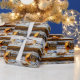 Brun och gräddminiatyrhäst i snö. presentpapper