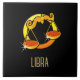 En slående fusion av rik brun och skakande guld, symbolen för Libra zodiac står modigt mot en svart bakgrund och förmedlar en känsla av balans och elegans. Med den här designen fångas det centrala i Libras harmoniska natur, samtidigt som en aning opulens läggs till det astrologiska temat.