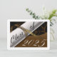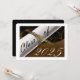 Brun och vit studentfest med ett diplom och studenten år. Baksidan är en svart bakgrund med vit text för studentfestens inbjudningar.