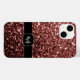 Brun röd faux Glitter-gnistor Monogram Fodral-Mate iphone case. Anpassa faux glatt, glatt, iphone case med ditt första och namn. Vackra glamorösa rödbruna brunblanka glitter-gnistor. Foto av Red Brown-miniatyrbilder är inte glitter!