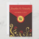 Kuvert Blommigt Swirls: Brown Red and Gult - © Sunny Mars Design. Anpassadets formella inbjudan till elegant 7" x 5" personligt bröllp med en brun och röd kuvertdesign, en monogramknapp och gult för söt och röda blommigtar.