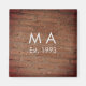 Brun rustic tegel stenskrift namn bokstav år datum magnet