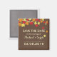 Spara datum magneter med löv som sjunker. Perfekt för höstens bröllopsmottagning. Vibrant och ljusa färger för fallsäsongen. Anpassa ordalydelsen för alla tillfälle med hösttema. Möhippa, babydusch, födelsedag, förlovningsfest eller vad som helst. Underbaren som party favors också.