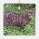 Brun tabby katt utomhus julgransprydnad keramik
