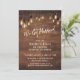 Brun trävägg med Edison-ljus, Vi gifte oss Inbjudningar