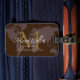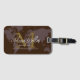 En fin design för att identifiera dina tillhörigheter när du reser med värld runt. Grafik karta i världen över en mörk brun bakgrund med ditt namn och ditt första namn (anpassningsbar M brev) på framsidan, och med ytterligare information på baksidan... här... så går vi igen... för ditt nya resande äventyr.