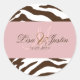 Brun zebra tryck, monogramklistermärken runt klistermärke
