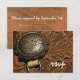 Anpassa det roliga chicen Brun Westernt svarskort för sadelLandsbyggsbröllop för OSA med giftermål med ditt svarsdatum. Det här charmerande anpassningsbarna ranch stil r.s.v.p.-kortet har ett digitalt förbättrat foto av en brun, verktygslös läderhäst med ett intrikat löv-format.