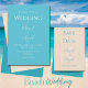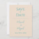 Underbar sandfärgad bakgrund med havsblå typsnitt “Spara datum„ som är perfekt som en föregångare till din formella inbjudan för alla dina gäster. Gjort med vackra typsnitt i enkelt och ändå elegant havsblått. Perfekt för ditt speciella tillfälle. En vacker Spara datum för ditt strandbröllop.