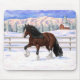 Bay Gypsy Vanner Irish Cob Tinker draft horse run in snö