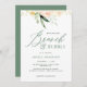 Brunch & bubblande grönt och persikofärgad vattenfärg blommigt bröllop inbjudningskort för möhippan. En del av en samling.