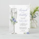 Denna snygga design har en blomsterbukett i olika nyanser av blått och ett champagneglas i akvarellstil. Fyll i din information i mallen. Använd " Anpassa "-funktionen för att ändra teckensnitt eller layout.