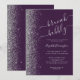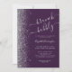 Den vänstra kanten på denna eleganta moderna brunch- och bubblig bröllopsduschinbjudan har en silverfärgad falsk glitterkant. Den anpassningsbara texten kombinerar silvergrå handskrift, kopparplåt och kursiva teckensnitt på en lila bakgrund. Baksidan har en matchande lila och silverdesign.