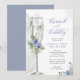Denna snygga design har en blomsterbukett i olika nyanser av blått och ett champagneglas i akvarellstil. Fyll i din information i mallen. Använd " Anpassa "-funktionen för att ändra teckensnitt eller layout.