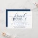 Modern Elegant Navy Blue Script-Möhippa (Brunch Bubly), inbjudningskort för fest. Inbjudan gästerna med detta perfekt-inbjudningskort. Toppen som är lätt att lägga till/redigera med information om möhippa party.