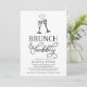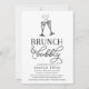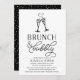 Inbjudan älskade dem att duscha bruden på en "brunch och bubblande" möhippa med dessa chic svarta och vita inbjudningar med två champagnefluber gått med av ett brinnande hjärta och elegant typografi.