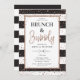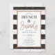 Brunch & Bubly Glitter Champagne Inbjudningskort för möhippan med svart och vit strimlad bakgrund