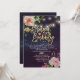 Inbjudningskortmallar för möhippa / Bröllop Firande - Faux guldskript, Elegant Watercolor Blommigt Peach Vit ros och String Ljus på Lila Gnistra Bokeh Ljus Background. En Perfekt för din stora dag! Alla textstorlekar i Stil, Färg kan anpassas efter dina behov.