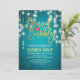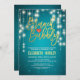 Inbjudningskortsmallar för möhippa / Bröllop Firande - Elegant Faux guldgolv Möhippa Skriva och Vintage String Ljus med Turcos Blue Glitter Gnistra Background. En Perfekt för din stora dag. Alla textstorlekar i stil, färg, kan ändras för att passa dina behov!