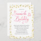 Den här inbjudan från den söt möhippan innehåller frasen "Brunch and Bubly" skriven i kalligrafi för söt vattenfärg, glam faux glitter och faux guld foil dots. Om det behövs kan ytterligare text eller foton läggas till på kortets baksida.