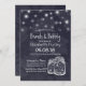 Inbjudningskortsmallar för möhippa / Bröllop Firande - Elegant Brunch och Bublet Lettering i skript och Vintage Mason Burk String Ljus på marinbakgrunden för marinblå Blommigt i marinbakgrunden. En Perfekt för din stora dag. Alla textstorlekar i stil, färg, kan ändras för att passa dina behov!