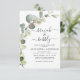 Brunch och BubLY Eucalyptus Greenery Succulent Botanical Watercolor Emerald Grönt Vår bröllop Möhippa QR Code Inbjudningar på vit bakgrund - innehåller vacker manustypografi och elegant med modernt botaniskt löv och grön för att den speciella Briden ska vara firande.